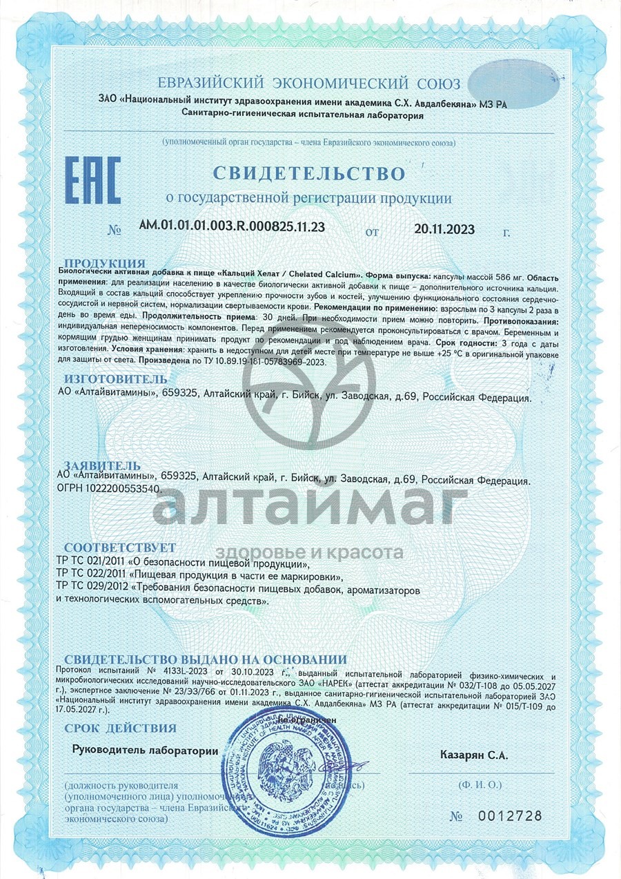 Есть вопросы по товару "Кальций хелат БАД Алтайвитамины 120 капсул"?