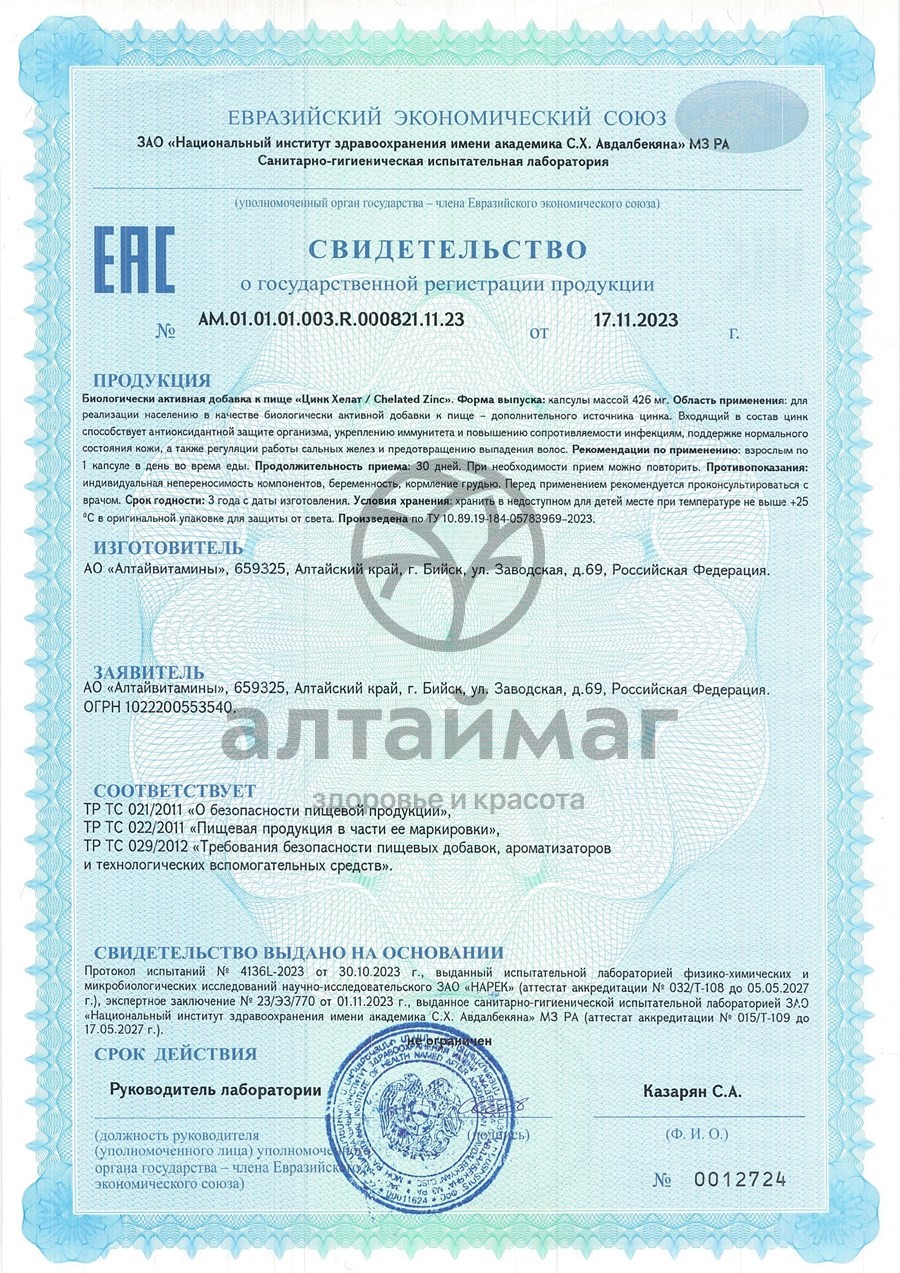 - Купите Цинк Хелат Алтайвитамины 90 капсул в Ессентуках по доступной цене 792 ₽ с доставкой на дом или заберите Ваш заказ в Ессентуках из ближайшего пункта выдачи, сделав заказ на AltaiMag.ru.